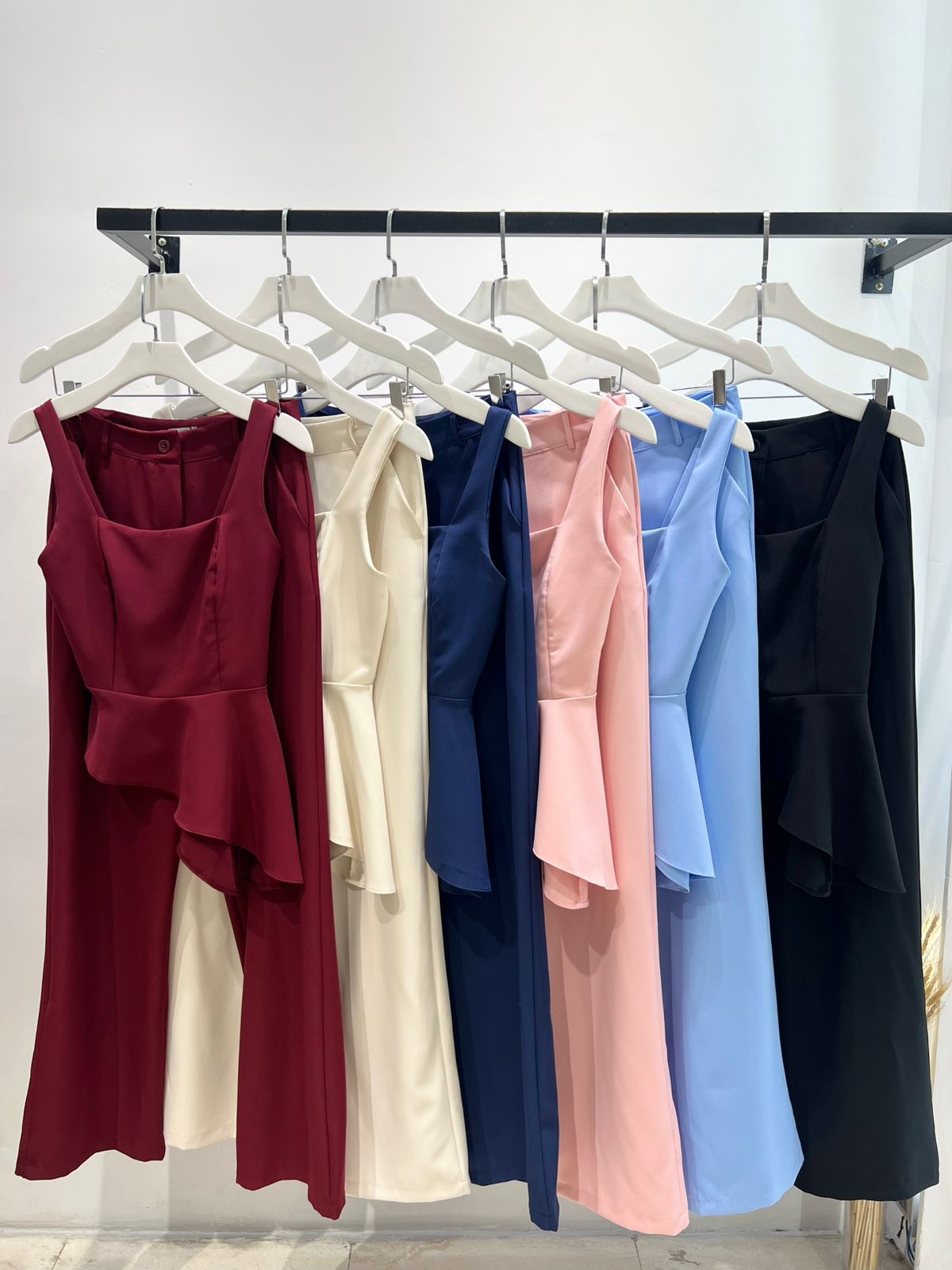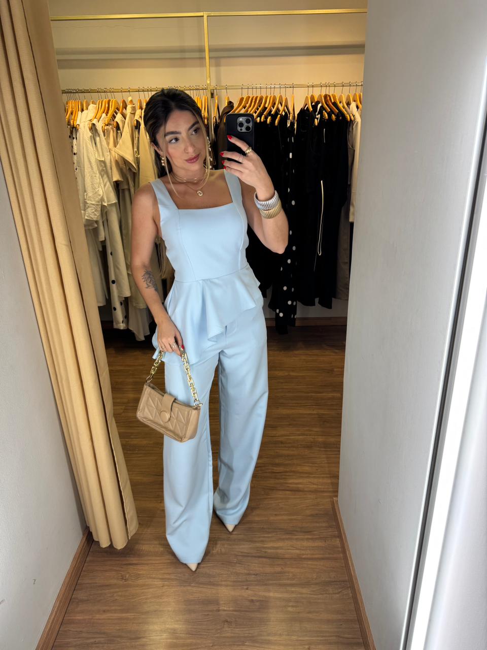 Conjunto composto por calça e blusa assimétrica todo em alfaiataria premium. A calça é pantalona, possui passador para cinto, bolso faca, ziper e botão frontal. Traz um caimento impecável e muita elegância. A blusa possui forro duplo no busto, elastico na parte de cima da blusa, zíper nas costa e uma assimetria com babado. É um conjunto bem versátil e você consegue usar em qualquer ocasião.