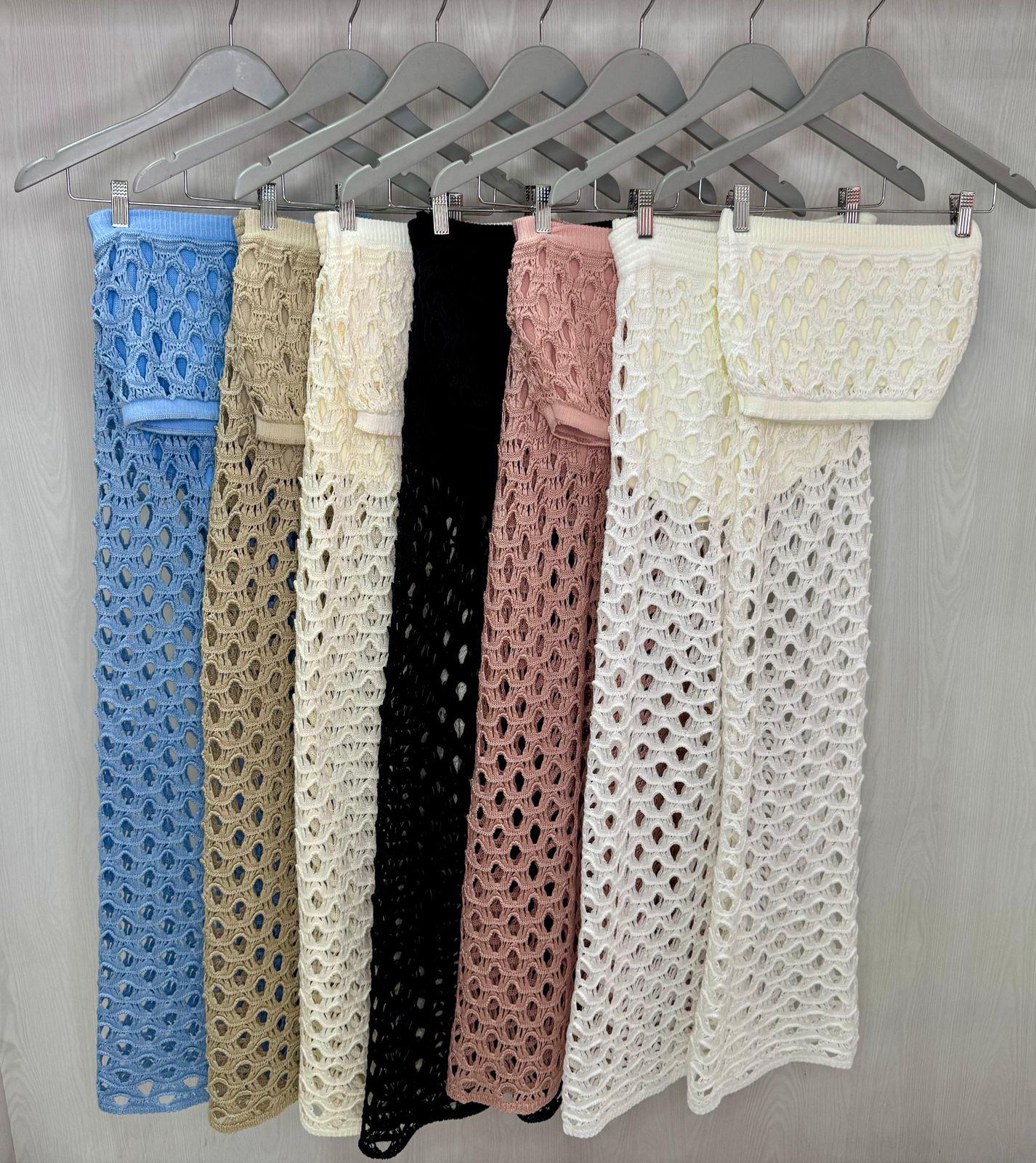 Conjunto composto por calça e cropped, todo em trico premium, possui um shortinho para usar junto com a calça.