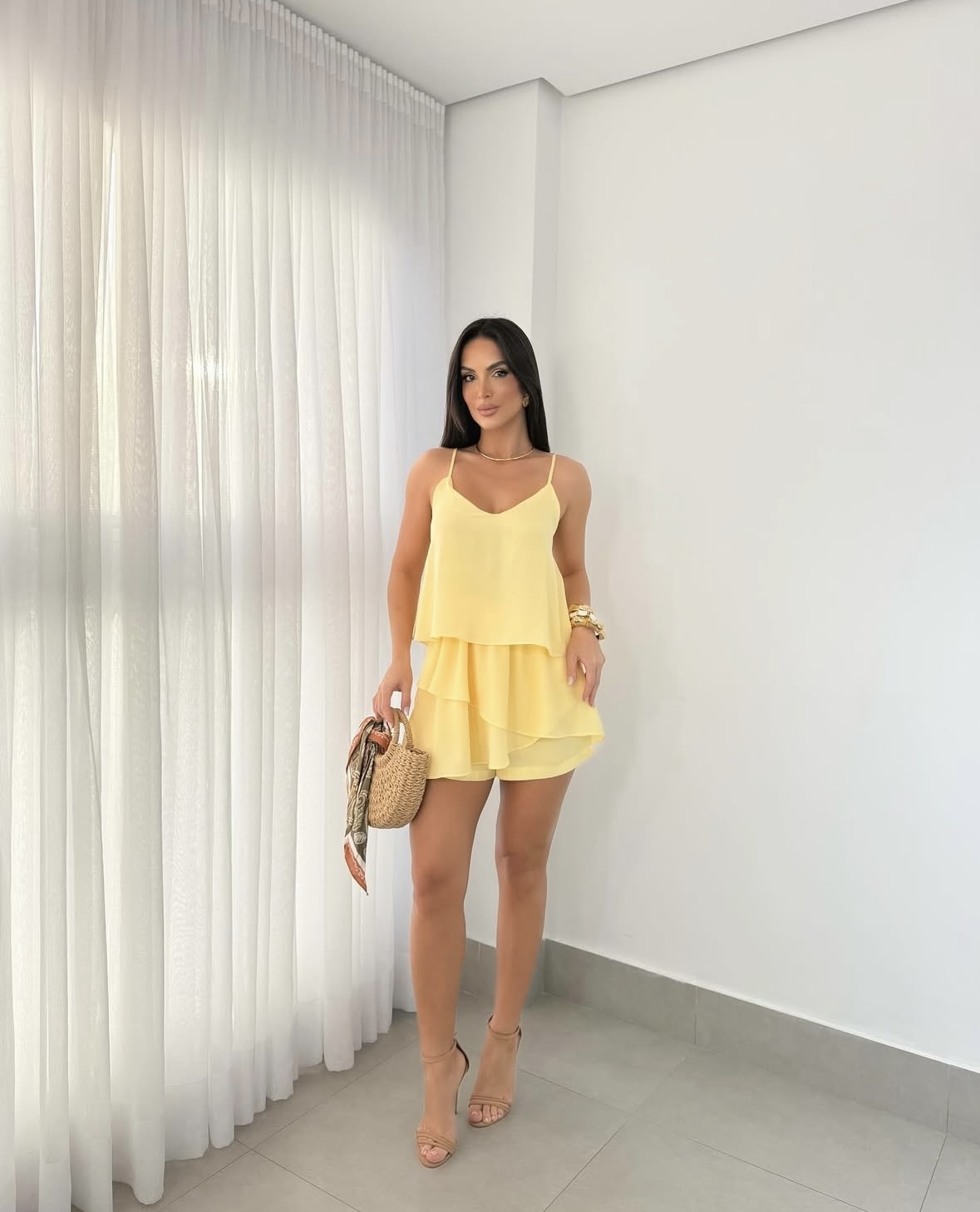 Macaquinho babado todo em crepe. O macaquinho possui regulagem na alça, elastico na cintura, todo forradinho, dá uma ótima sustentanção e tem camadas com babadinhos que deixa a pecinha leve e da aquele chame no look. Ele é atemporal e tem a sofisticação na medida certa, com um acabamento impecavel e perfeito para se usar nesse verão.