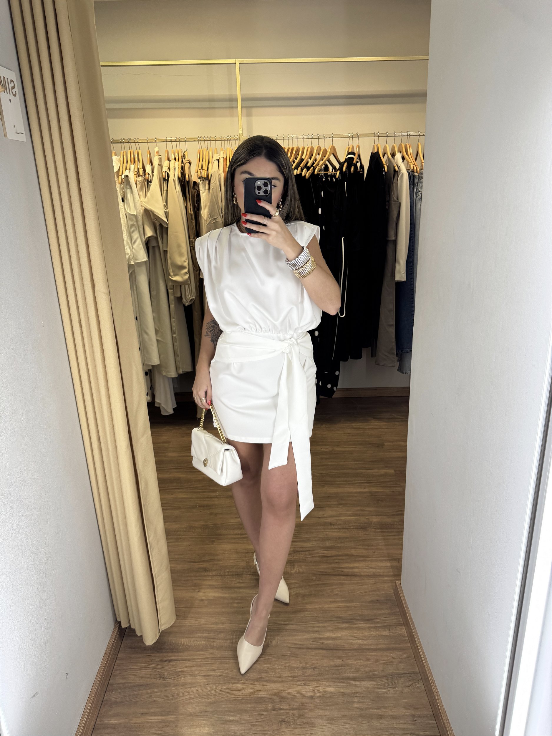 Descrição: Vestido amarração todo em alfaiataria premium. O vestido possui ziper nas costas, um botão com detalhe nas costas, você consegue usar com sutiã e tem duas faixas para você fazer varias amarrações com elas e da aquele chame no look. Ele é atemporal e tem a sofisticação na medida certa, com um acabamento impecavel e perfeito para se usar nesse verão.