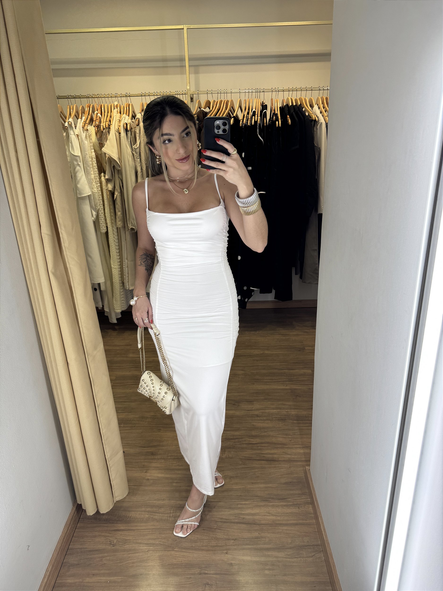 Vestido Franzido todo em poliamida, ele possui forro, regulagem nas alças, detalhes franzidos nas laterais. É aquela pecinha coringa que transforma o look. Confortável, estruturado, veste super bem, valoriza o corpo com elegância, possui um leve decote com o caimento impecável. É um vestido sofisticado, versátil e perfeito para se usar tanto de dia quanto a noite