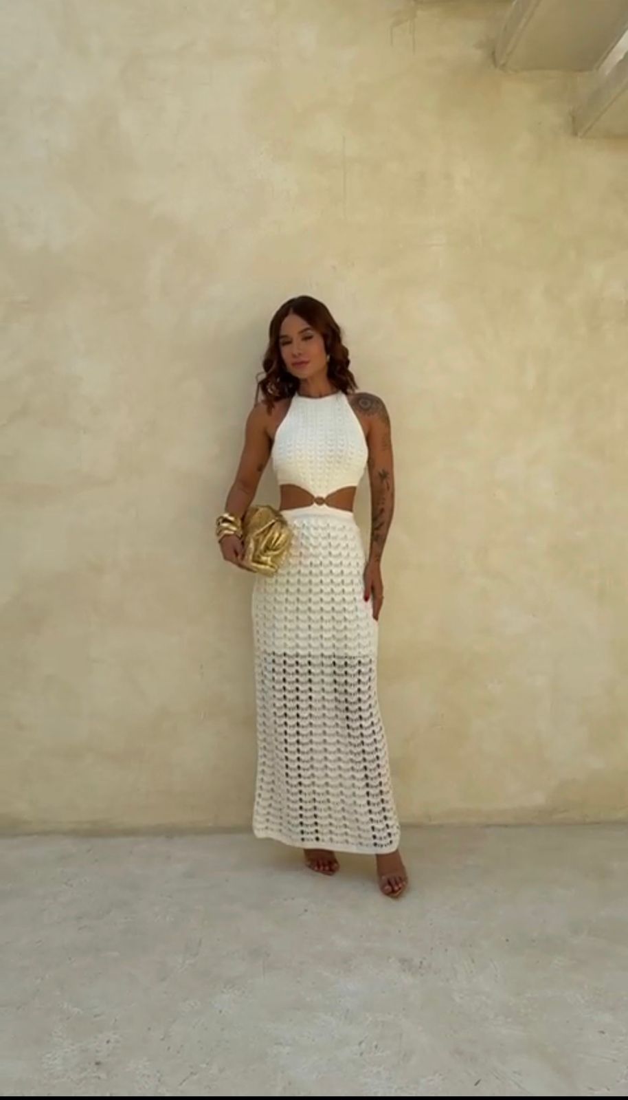 Descrição: Vestido longuete todo em tricô premium. Ele possui detalhe em arloga na parte da frente, recortes na lateral, amarração nas costas e regulagem, possui forro. Ele não marca, não fica transparente, ótimo para usar nesse final de ano, elegante, sofisticado e valoriza a silhueta.